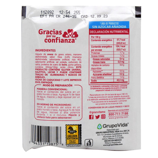 OfertaAvena Instantanea 0 Azucar Manzana 280 G (GRANVITA)