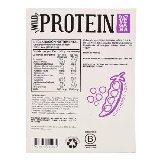Barra De Proteina Chocolate Y Coco 45 G (Paquete 16) (WILD PROTEIN)