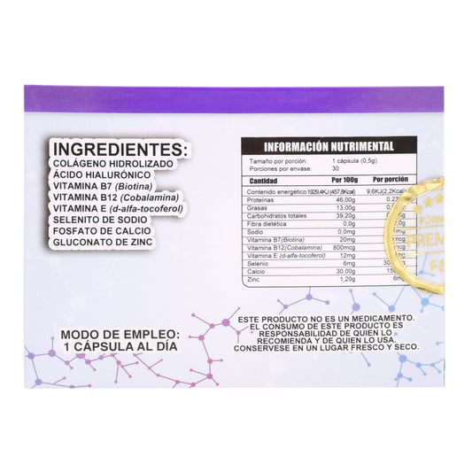Biotina Colageno Vitamina B5 E Zinc 30 Cápsulas (LIFFED5)