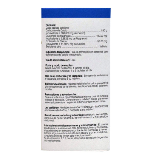 Calcio Caltron 600 Con Magnesio 60 Tabletas (SALUD NATURAL)