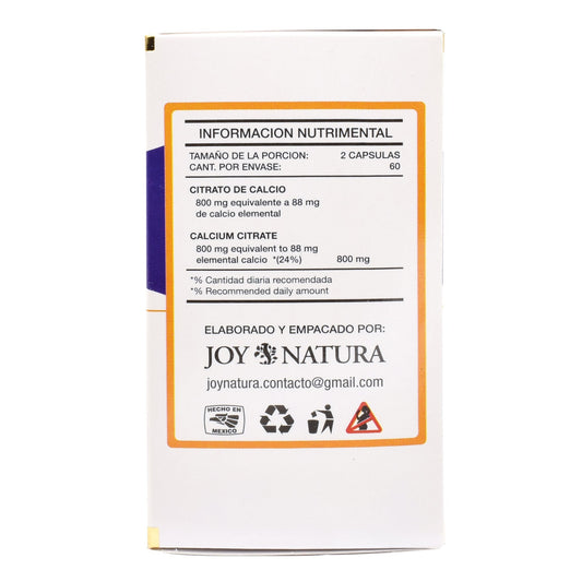 Citrato De Calcio Vitamina D3 60 Cápsulas (JOY NATURA)