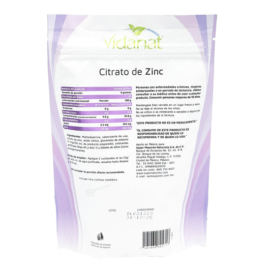 Citrato De Zinc Uva 150 G (VIDANAT)