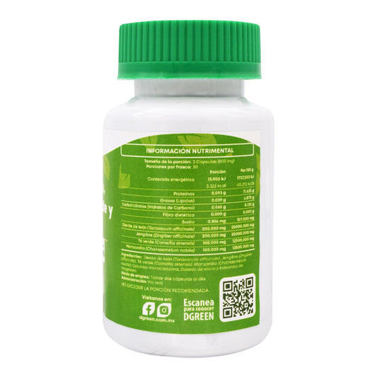 Diente De Leon Jengibre Te Verde Manzanilla 60 Cápsulas (DGREEN)