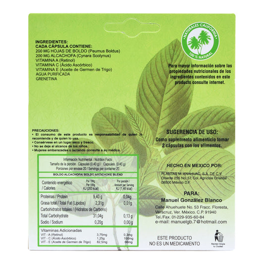 OfertaBoldo Y Alcachofa 40 Cápsulas (NATURALES CALIFORNIA)