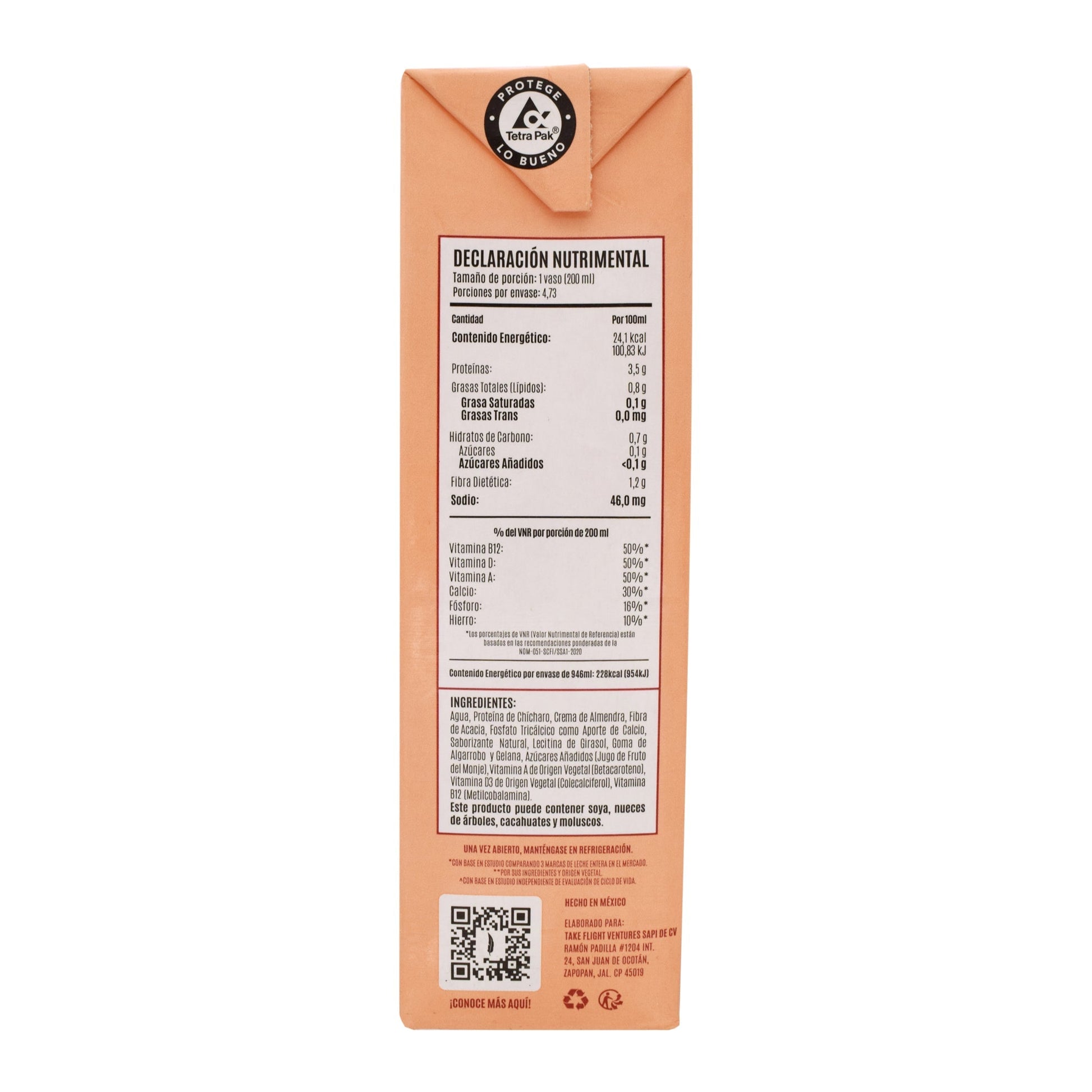 : :Excelente fuente de proteína vegetal, contiene vitaminas A, B12 y D3, libre de lácteos, gluten y soya, sin azíºcar, baja en grasa