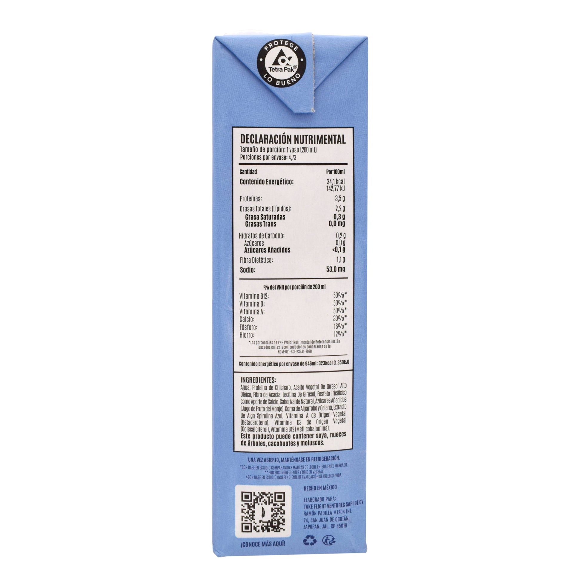 : :Excelente fuente de proteína vegetal, contiene vitaminas A, B12 y D3, libre de lácteos, gluten y soya, sin azíºcar, baja en grasa