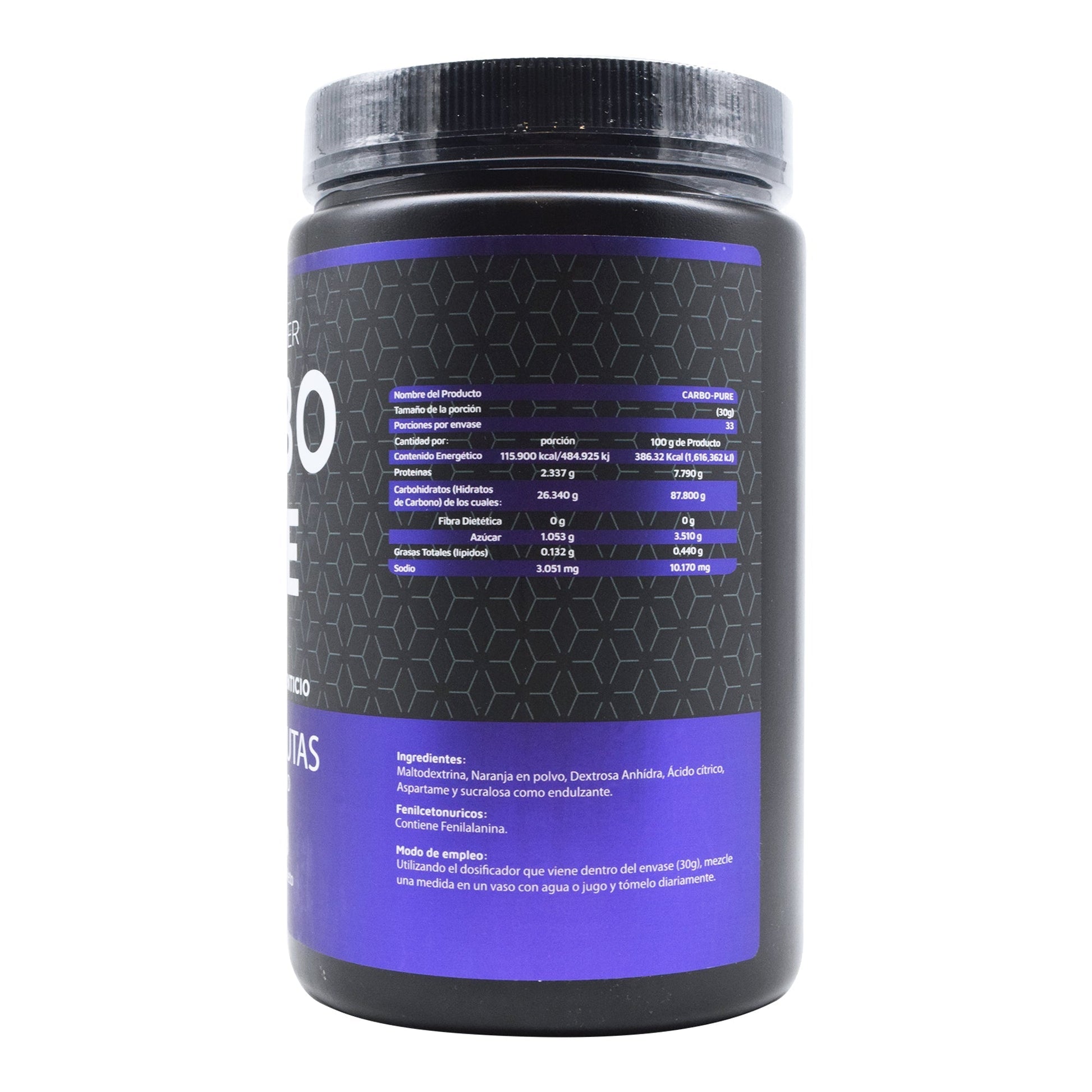 : :Maltodextrina, naranja en polvo, dextrosa anhídra, ácido cítrico, aspartame y sucralosa