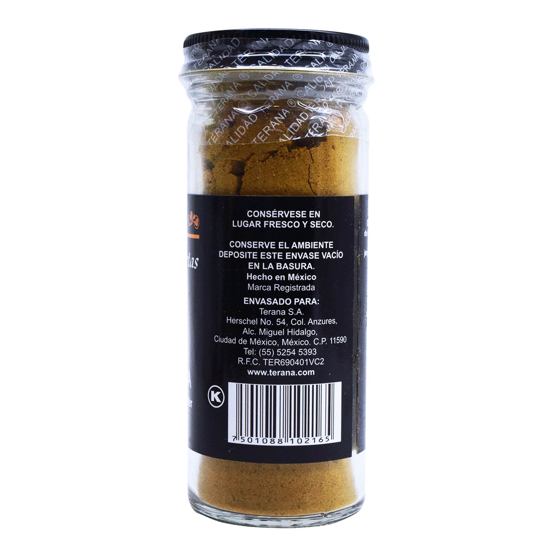 : :Cíºrcuma, semillas de cilantro, semillas de comino molido, pimienta gorda molida, pimienta cayenne, canela molida, jengibre molido, clavo molido, nuez moscada