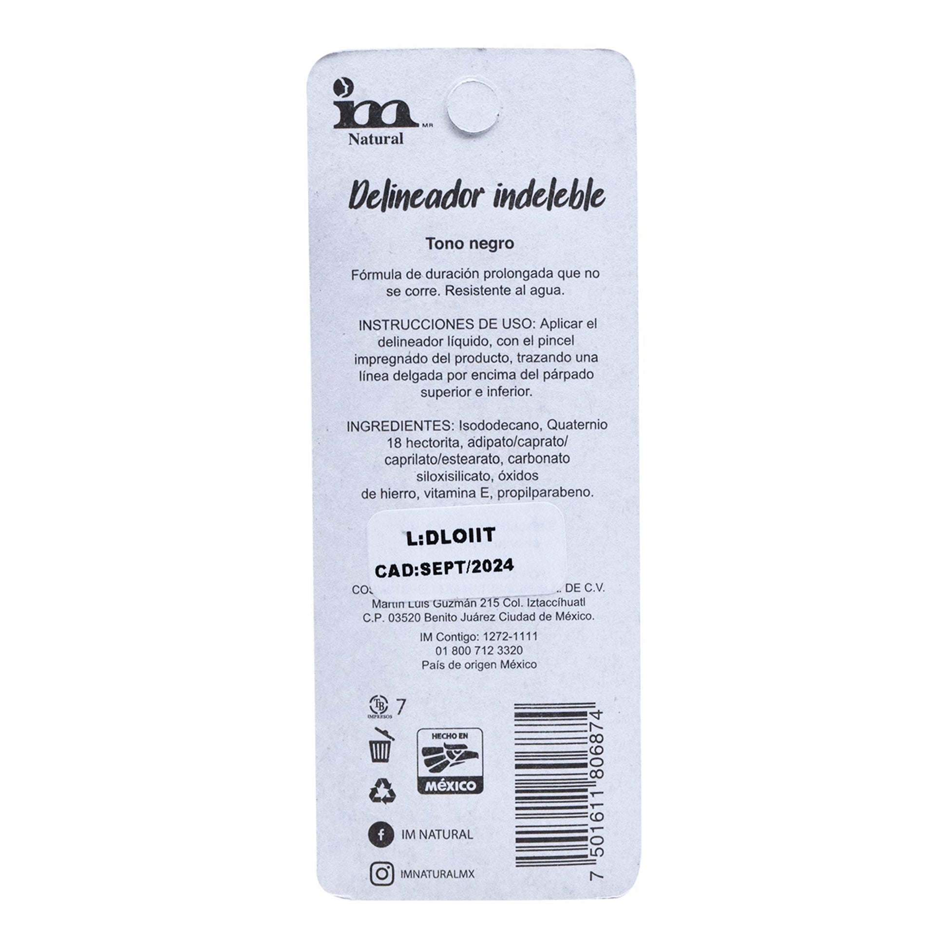 :Aplicar el delineado líquido, con el pincel pigmentado de producto, trazando una línea delgada por encima del párpado superior e inferior