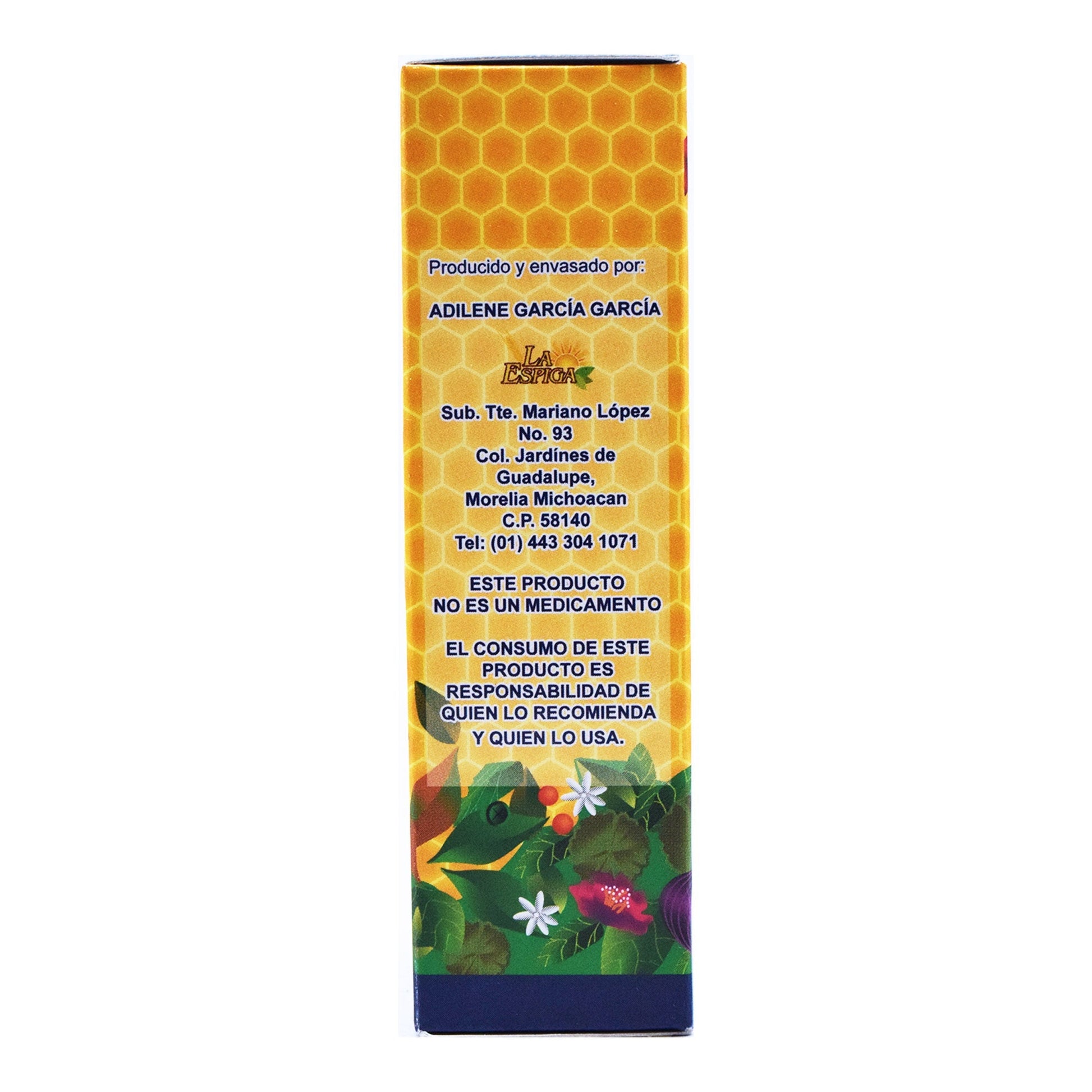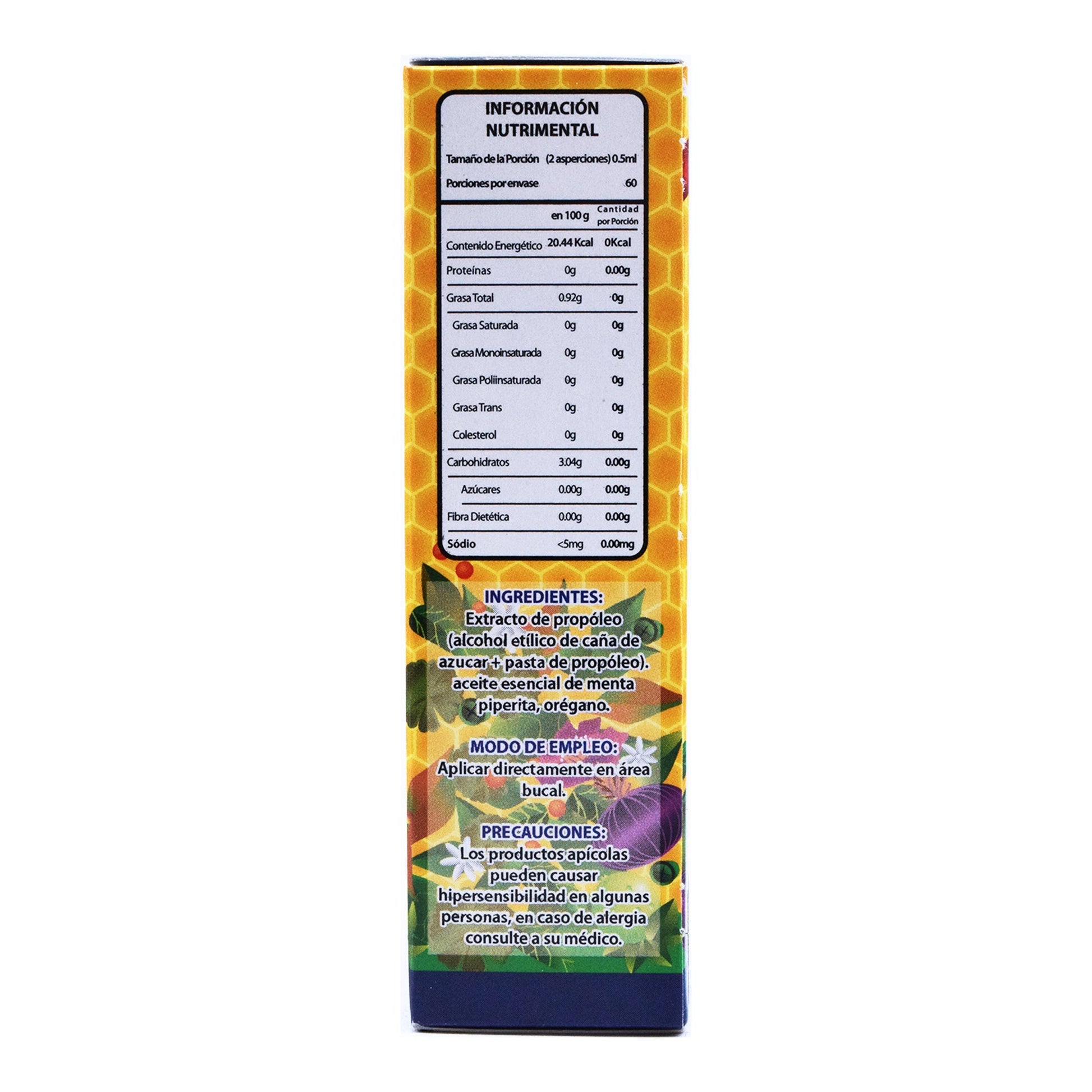 : :Extracto de propóleos, gordolobo, cebolla morada, tomillo, romero, bugambilia, ajo, malva, limón y vitamina C