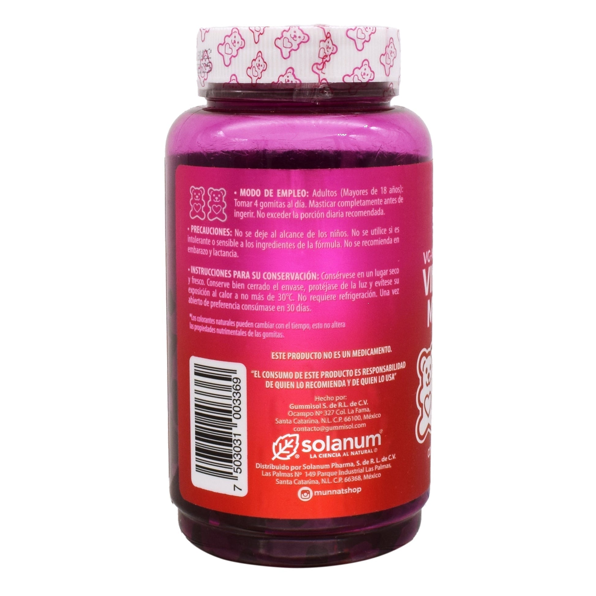 :Adultos, tomar 1 gomita 3 veces al día, masticar completamente antes de ingerir