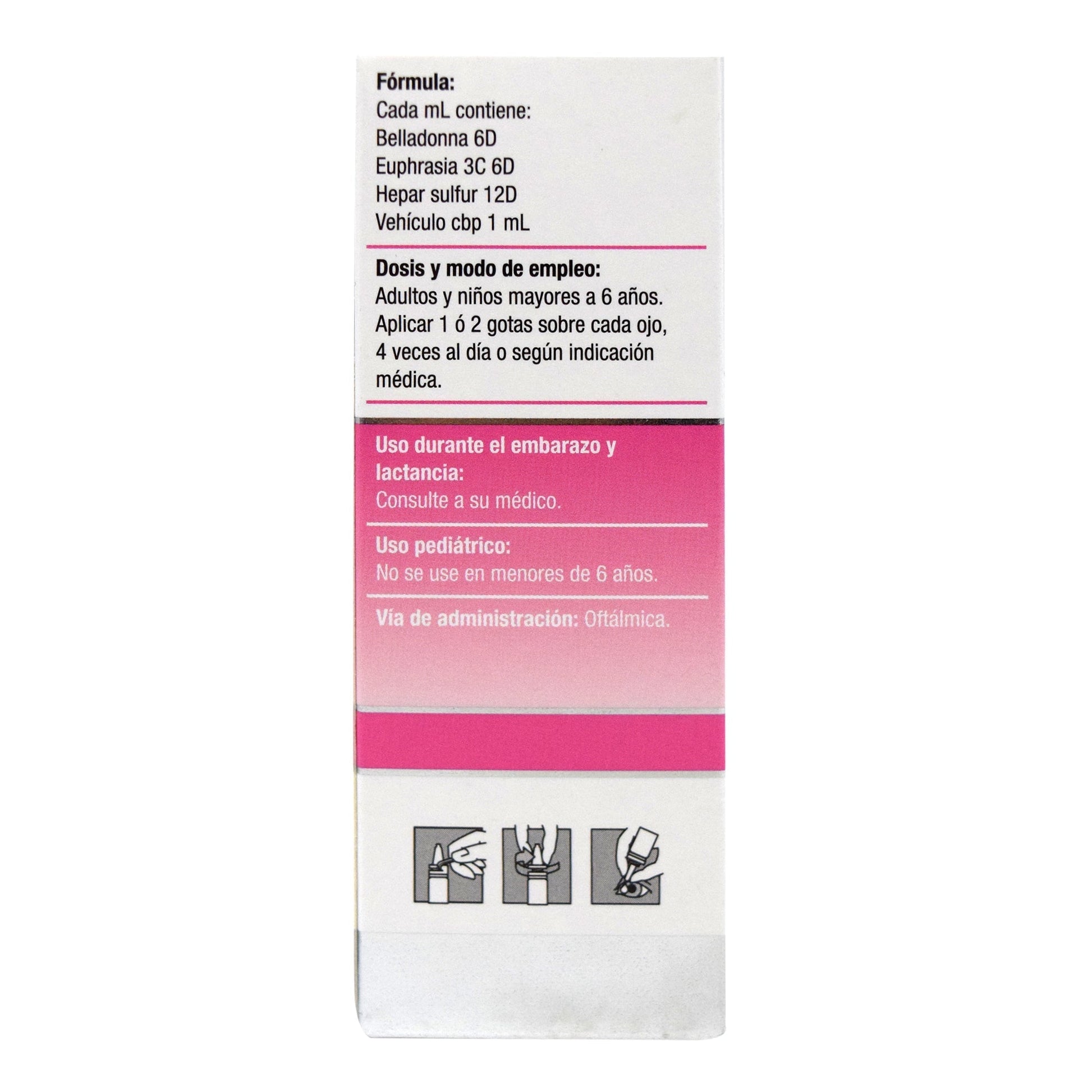 :Adultos y nií±os mayores de 6 aí±os aplicar 1 o 2 gotas cuatro veces al día