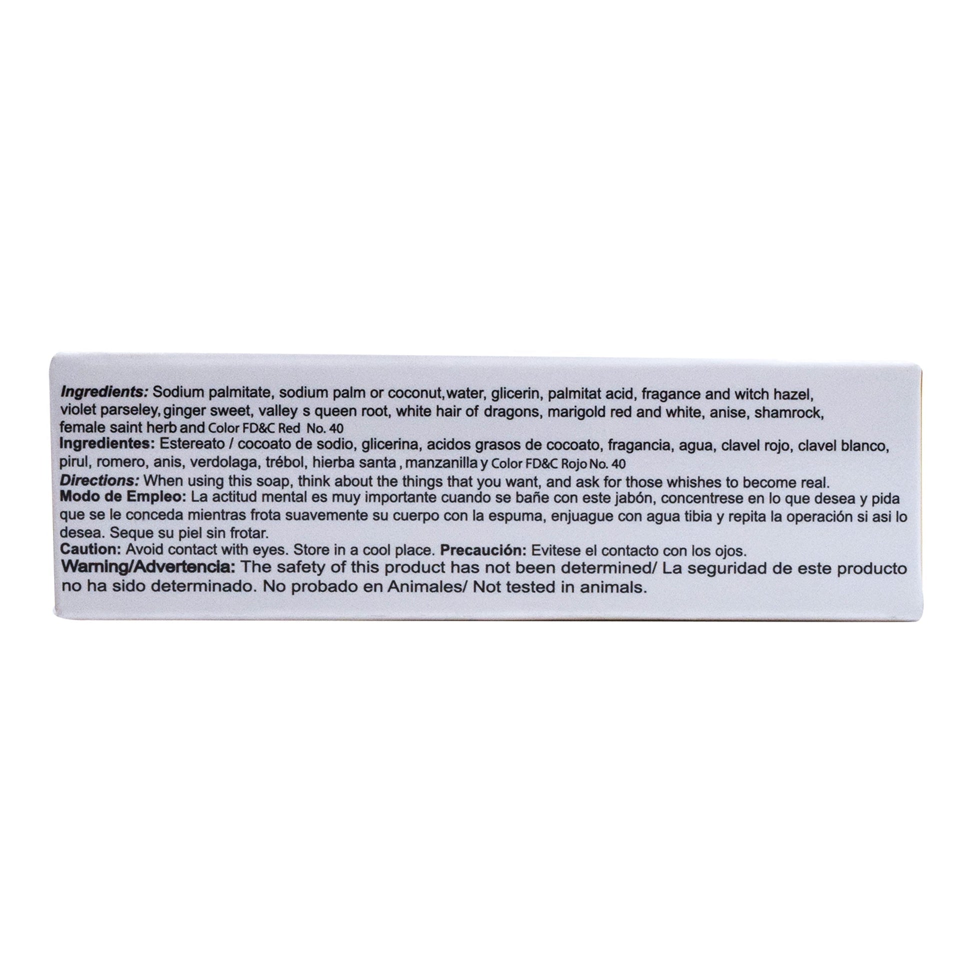 : :Cocoato de sodio, glicerina, fragancia, agua, clavel rojo, clavel blanco, pirul, romero, anís, verdolaga, trébol, hierba santa, manzanilla