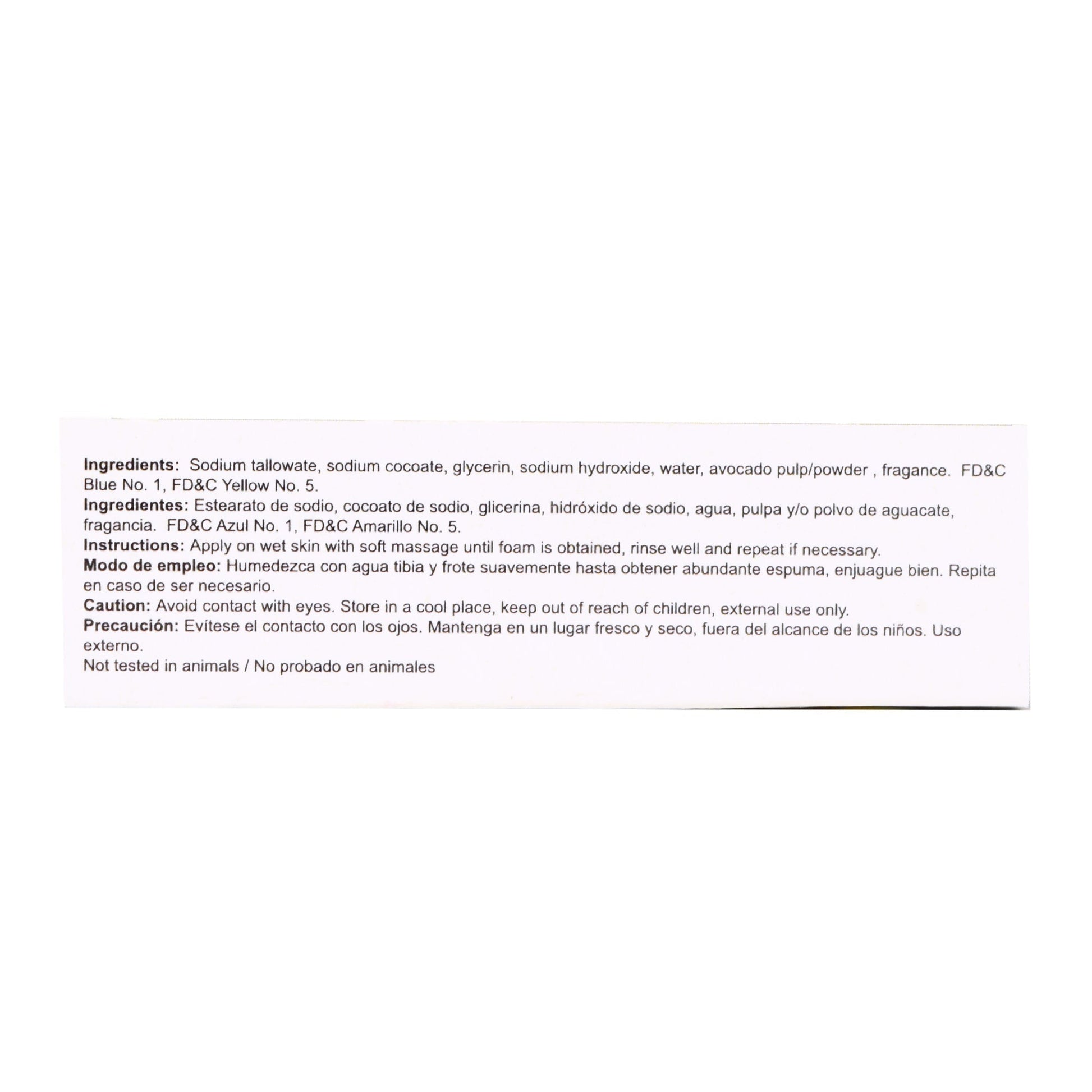 : :Estearato de sodio, glicerina, ácidos grasos de coco, palma, olivo, aguacate, agua y fragancia