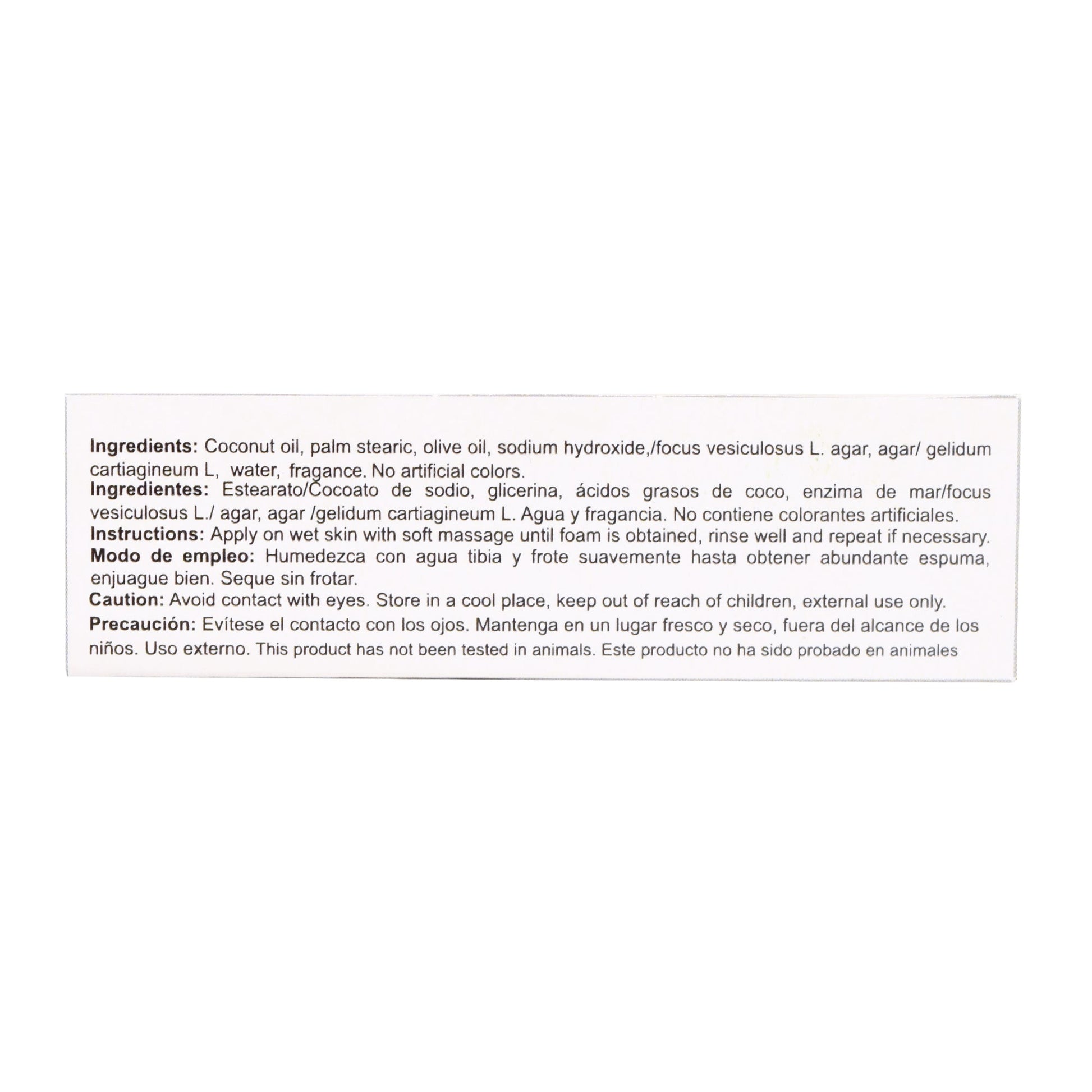: :Cocoato de sodio, glicerina, ácidos grasos de coco, enzimas de mar, agar agua, fragancia