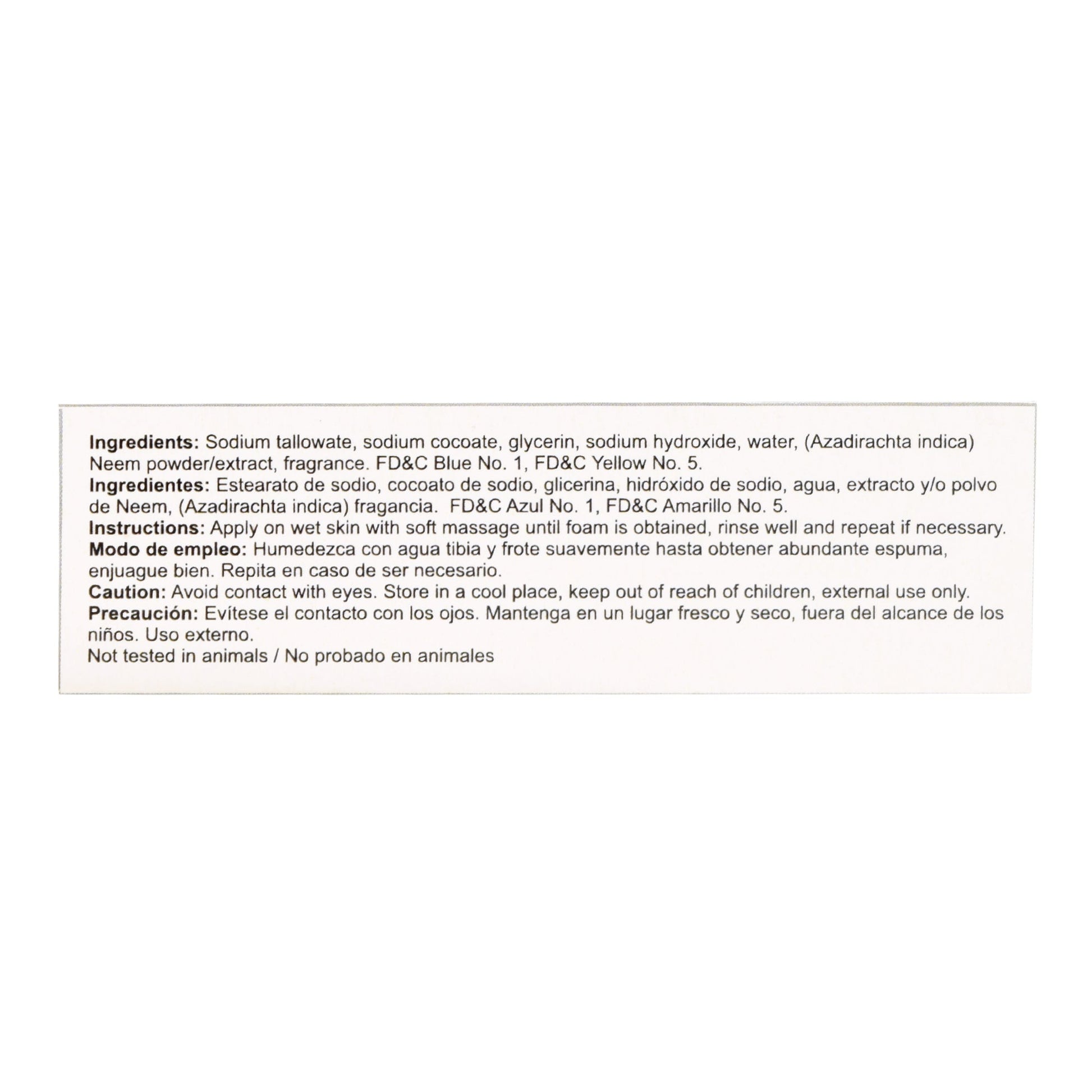 : :Estearato de coco, glicerina, hidróxido de sodio, glicerina, agua, extracto y/o polvo de neem, fragancia