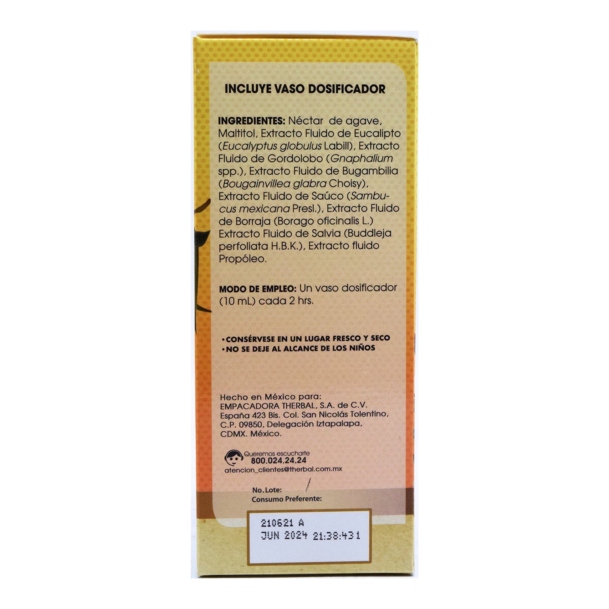 : :Néctar de agave, maltitol, extracto fluido de eucalipto, gordolobo, bugambilia, sauco, borraja salvia y propóleo