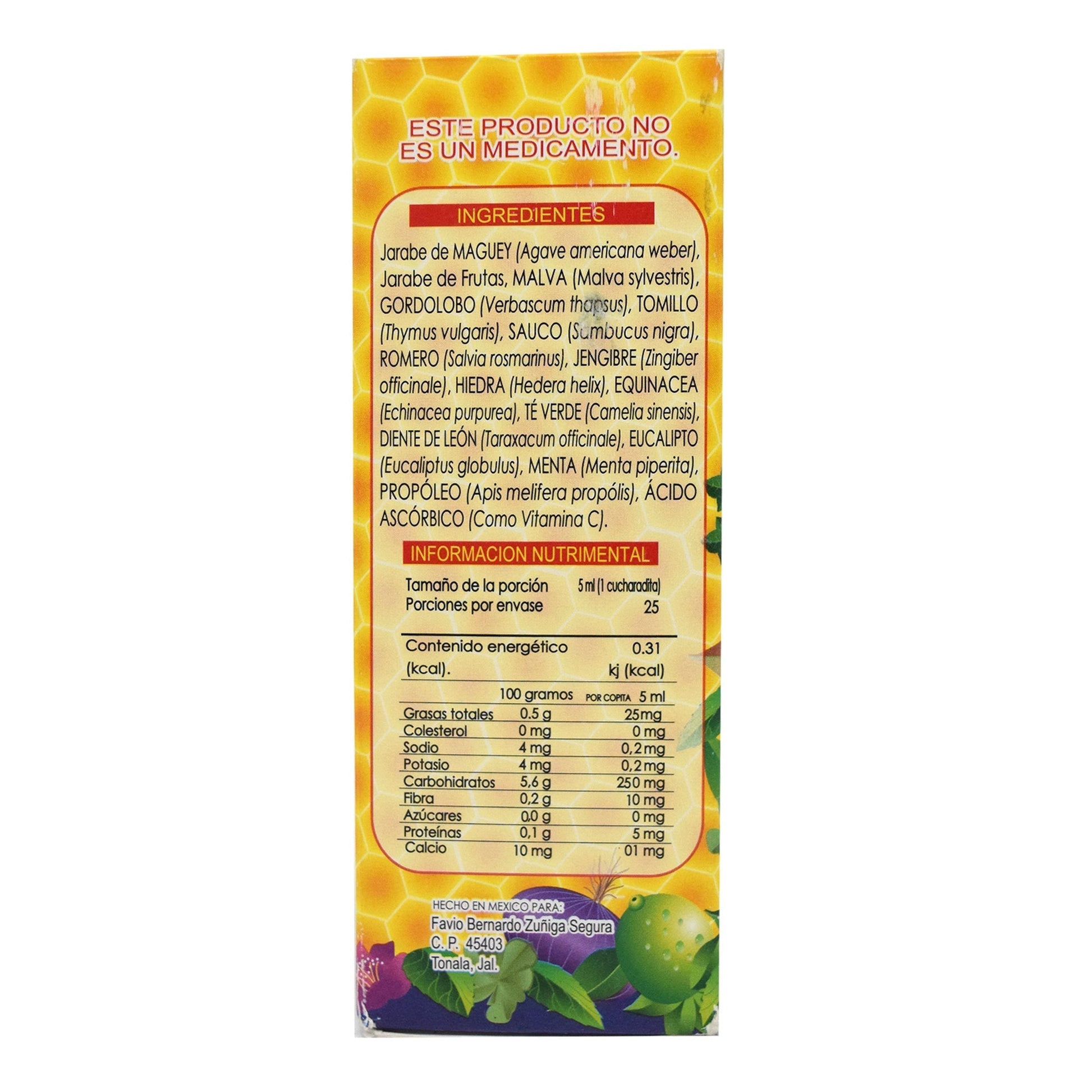 : :Jarabe de maguey, jarabe de frutas de malva, gordolobo, tomillo, sauco, romero, jengibre, equinácea, te verde, diente de león, eucalipto, menta, propóleo, vitamina C