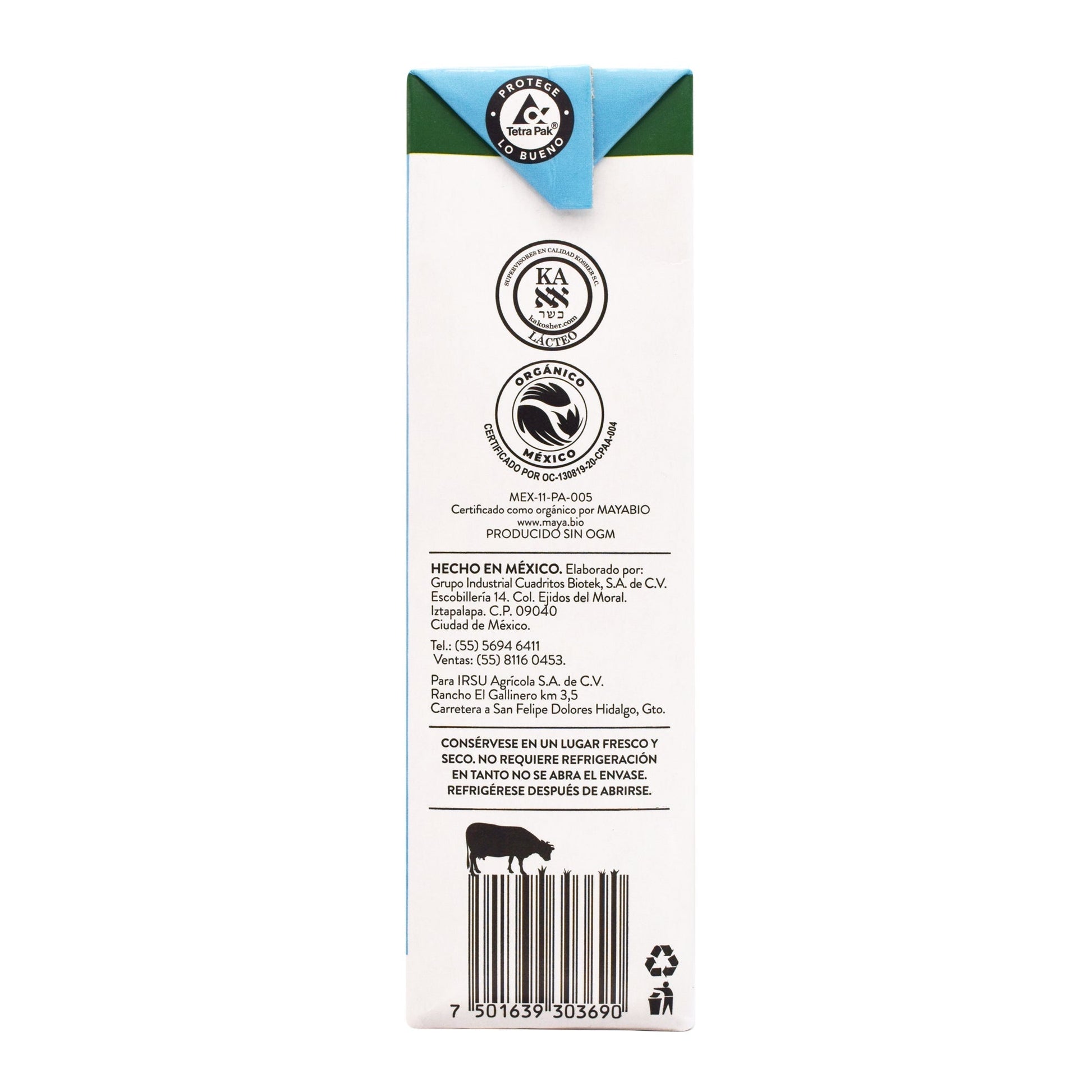 : :Leche orgánica entera de vaca, vitamina A y vitamina D3