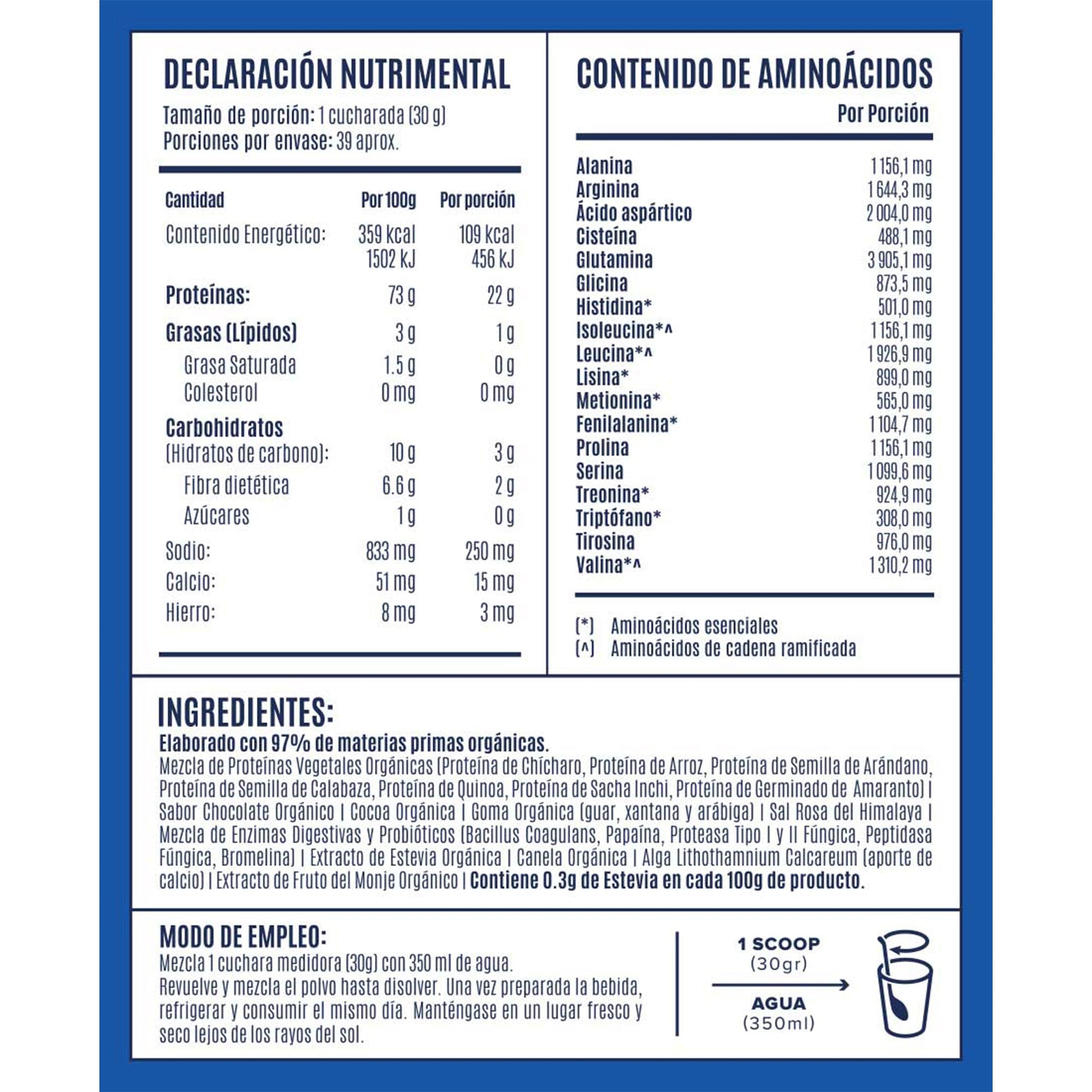 : :Proteína de arroz orgánica, proteína de chícharo, proteína de quínoa, proteína de semilla de calabaza orgánica, proteína de semilla de lupino, proteína de sacha inchi, proteína de semilla de girasol, amaranto orgánico, creatina