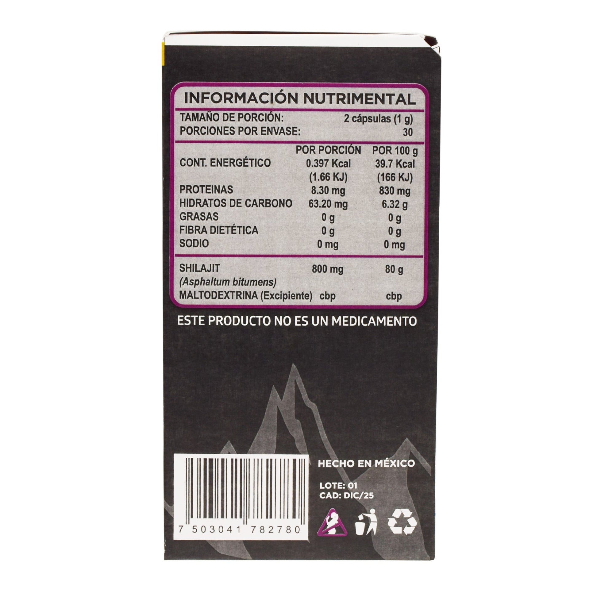 : :Shilajit, tonkat-ali, L-arginina, citrato de zinc, maltodextrina
