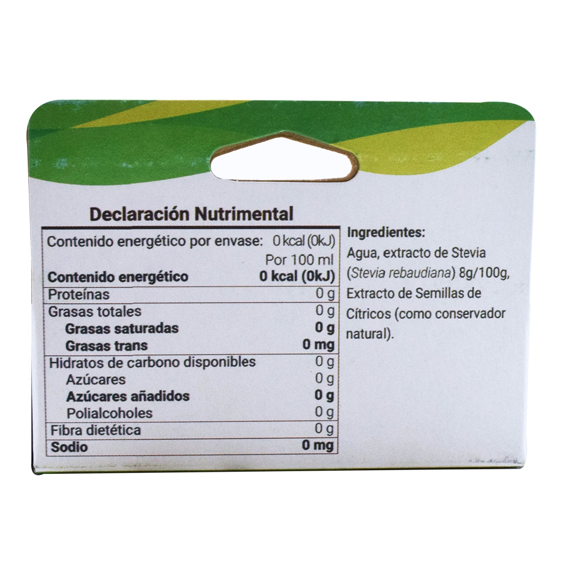 : :Agua, extracto de Stevia, extracto de semillas de cítricos