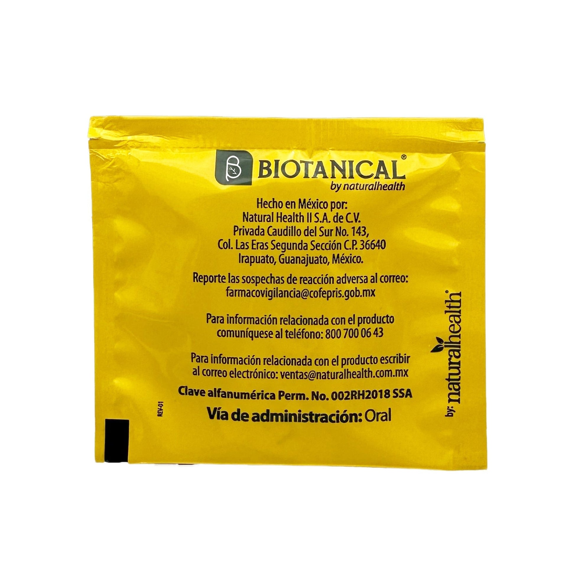 :Coloque un sobre en una taza con agua caliente (240 ml) y deje reposar por 5 min., tomar preferentemente por la noche