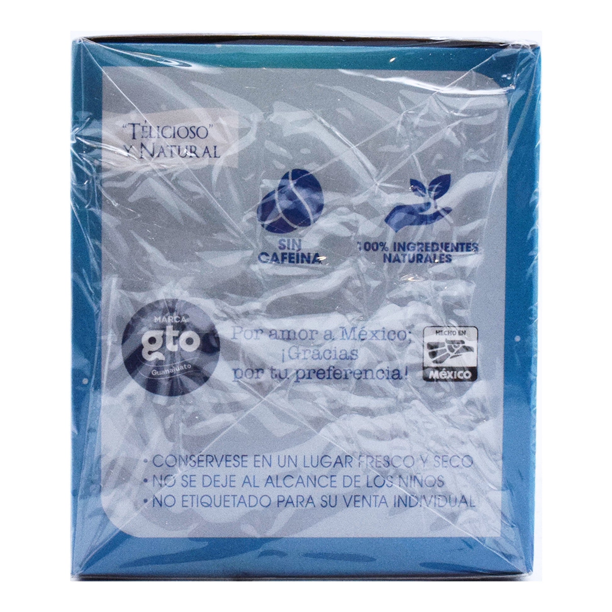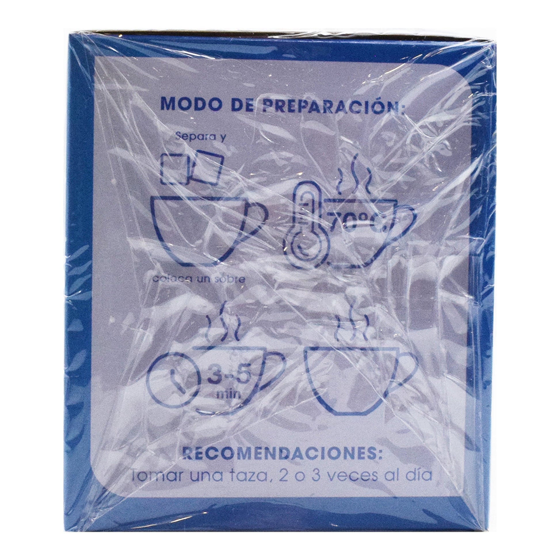 :En una taza colocar una bolsita de té y agregar agua hirviendo, dejar reposar de 3 a 5 minutos, endulzar al gusto