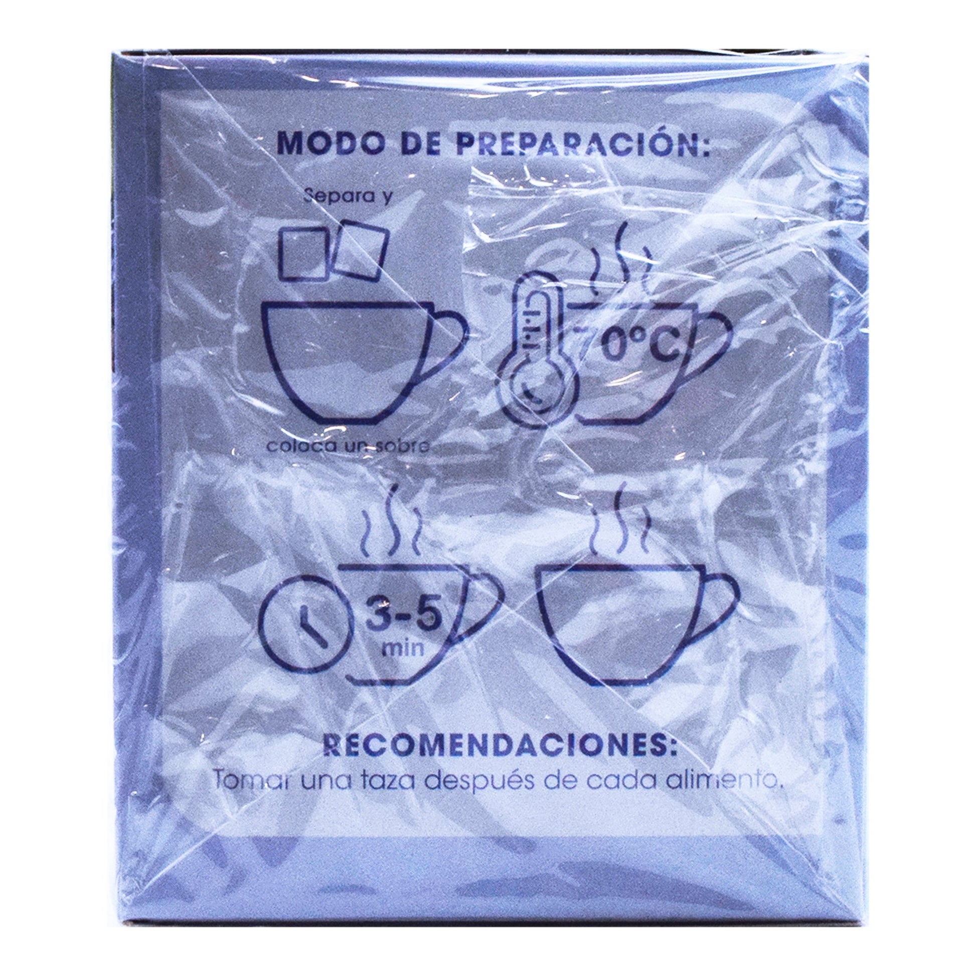 :En una taza colocar un sobre y agregue agua hirviendo, deje reposar de 3 a 5 minutos y endulce a su gusto