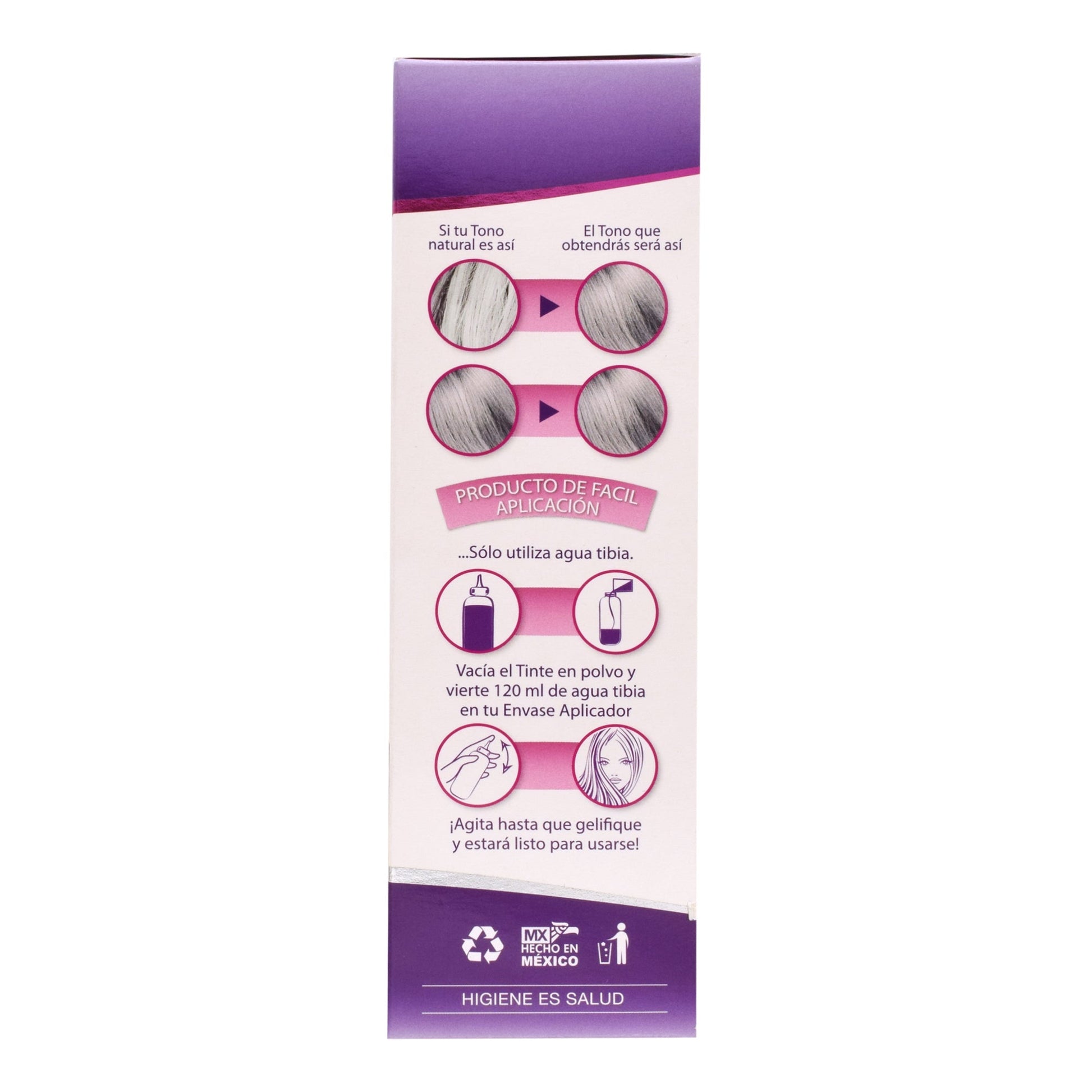 :Colocarse los guantes, verter el polvo en la botella aplicadora, verter 120 ml de agua caliente (50°C) hasta la marca, agitar hasta que esté completamente mezclado, comienza la aplicación y deja actuar desde 30 hasta 45 minutos dependiendo la intensidad del tono que quieras, enjuaga y aplica el revitalizador para cabello por un lapso de 3 minutos, enjuaga nuevamente con agua tibia y seca y desecha el sobrante