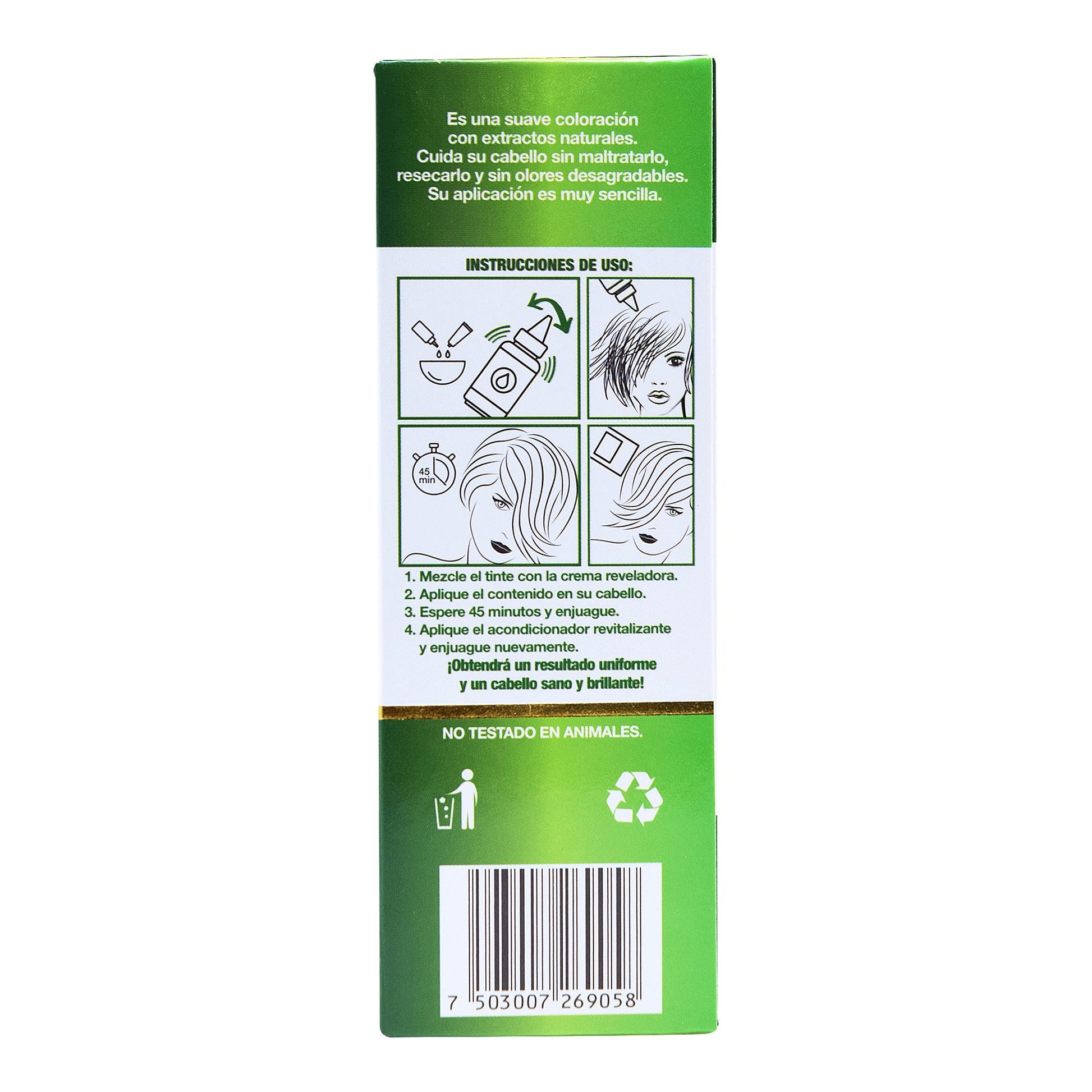 :Mezclar en tinte con la crema reveladora, aplicar el contenido al cabello, esperar 45 minutos y enjuagar, aplicar el acondicionador revitalizante y enjuagar nuevamente