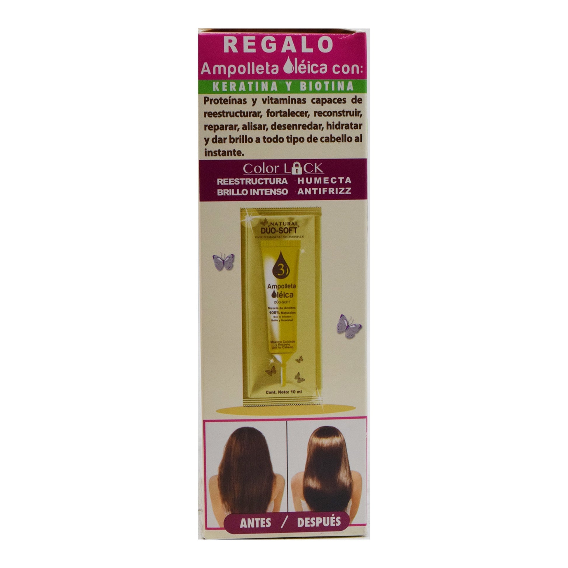 Consulte a su médico antes de usar si está embarazada o en periodo de lactancia, no se deje al alcance de los nií±os, debe hacer una prueba de sensibilidad previo a la aplicación, como se indica en el instructivo, no aplicar en pestaí±as o cejas