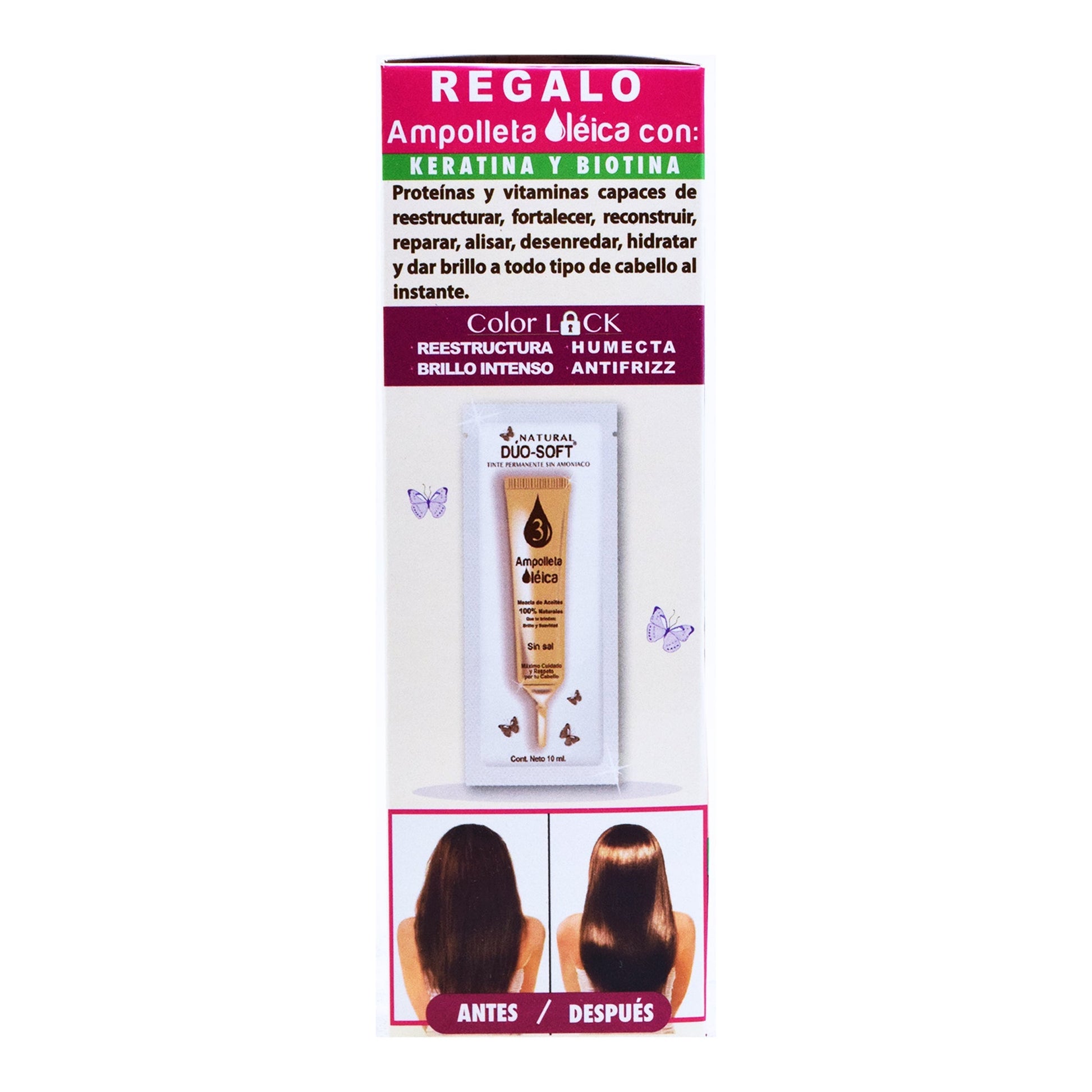 Consulte a su médico antes de usar si está embarazada o en periodo de lactancia, no se deje al alcance de los nií±os, debe hacer una prueba de sensibilidad previo a la aplicación, como se indica en el instructivo, no aplicar en pestaí±as o cejas