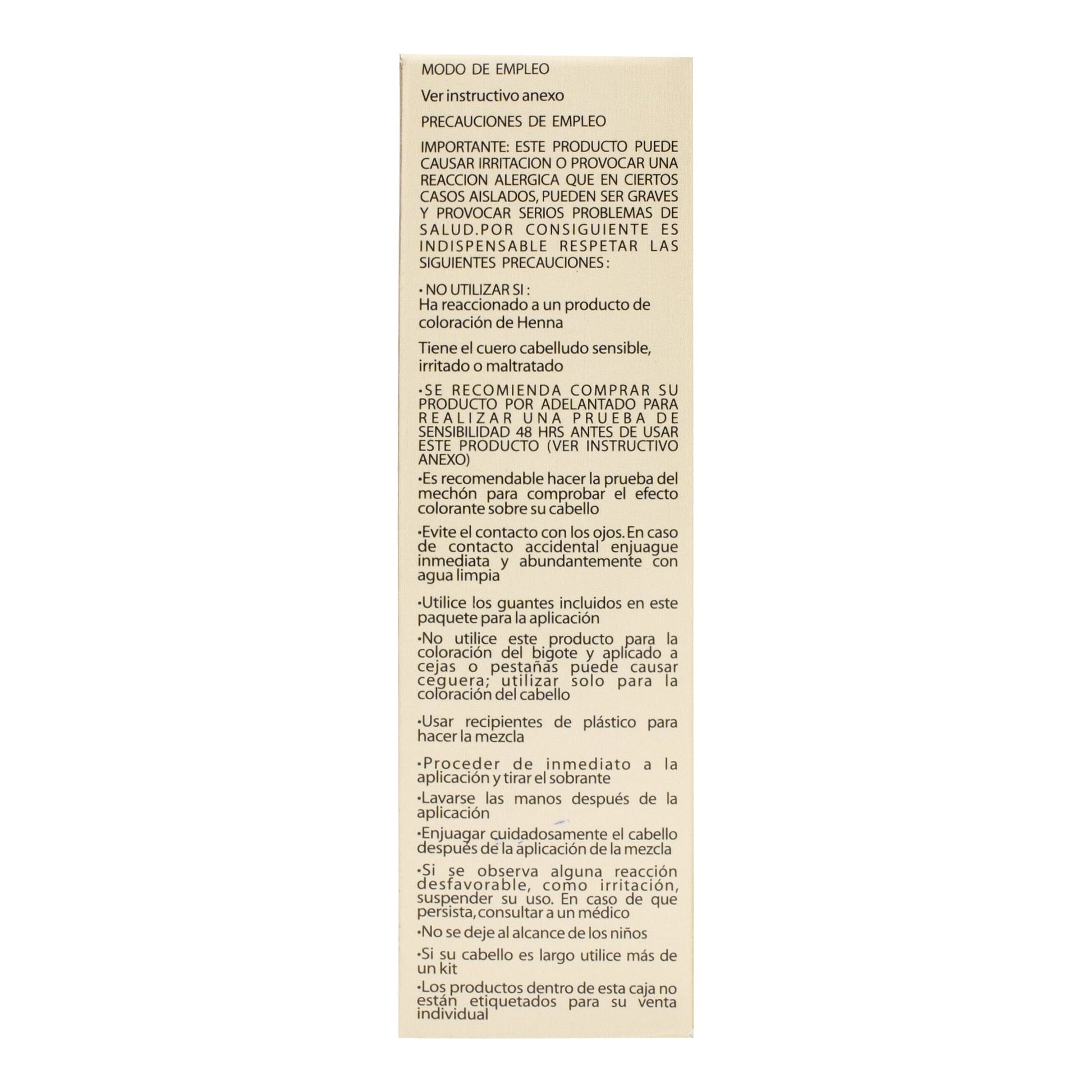 Realizar una prueba de sensibilidad 48 horas antes de su aplicacion de acuerdo con este instructivo, este producto puede causar irritacion en algunas personas, suspenda su empleo en caso de irritacion, evite el contacto con los ojos, en caso de contacto accidental enjuague inmediata y abundantemente con agua limpia, mantener fuera del alcance de los ninos, conservar en lugar fresco y seco