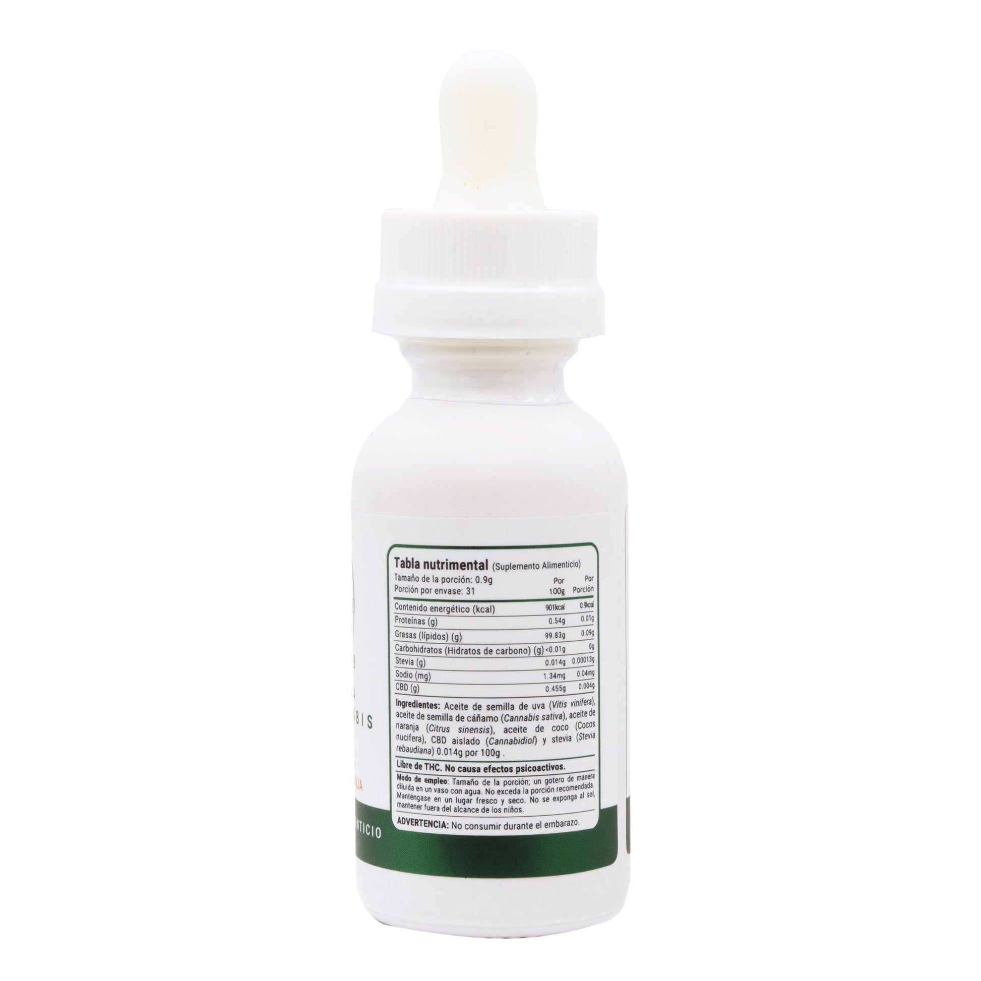 : :Aceite De Semilla De Uva (Vitis Vinifera), Aceite De Semilla De Cáí±amo (Cannabis Sativa), Aceite De Naranja (Citrus Sinensis), Aceite De Coco (Cocos Nucifera), CBD Aislado (Cannabidiol), Stevia (Stevia Rebaudiana) 0.014g Por 100g